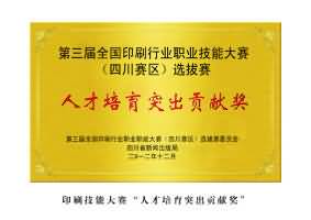 2012年獲得第三屆全國印刷行業(yè)職業(yè)職能大賽(四川賽區(qū))選拔賽人才培育突出貢獻(xiàn)獎